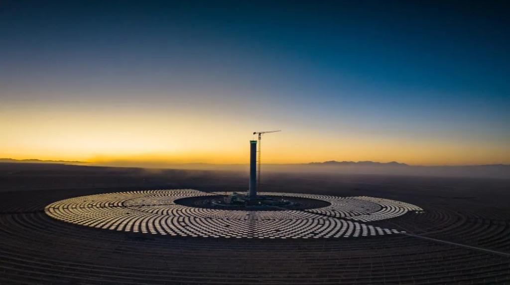 茫茫戈壁,百米高塔巍然耸立,万余面定日镜“逐日”而动,犹如一朵巨大的“银色向日葵”。这朵“向日葵”由行业首创的14500面正五边形定日镜构成,正在服务于国家首批太阳能热发电示范项目、新疆首个光热发电站——新疆哈密50兆瓦熔盐塔式光热发电项目。该项目每年贡献近2亿度清洁电能,为新疆绿色低碳发展带来更多可能。